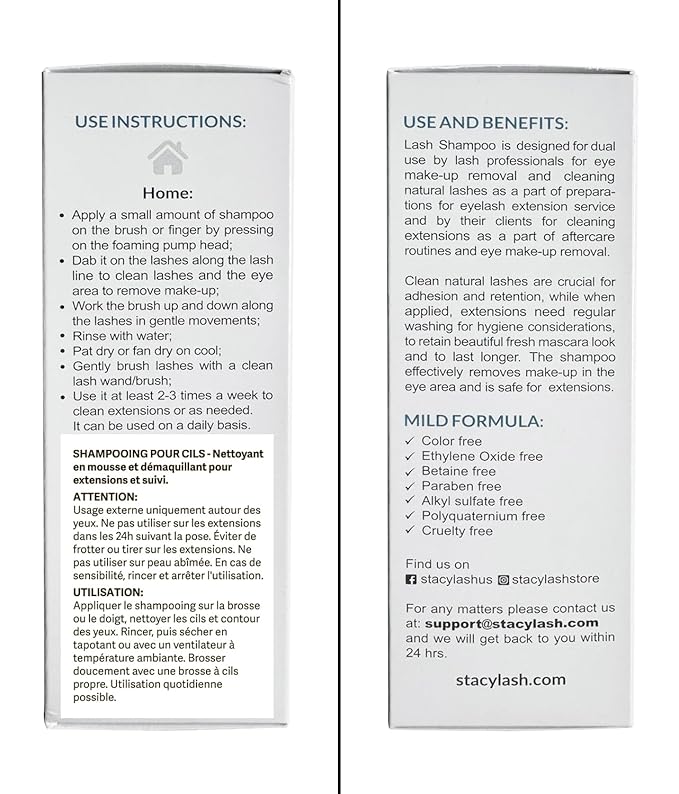 STACY LASH 6.76 fl.oz / 200ml Eyelash Extension Shampoo + Brush/Eyelid Foaming Cleanser/Wash for Extensions & Natural Lashes/Safe Makeup Remover/Supplies for Professional & Home Use