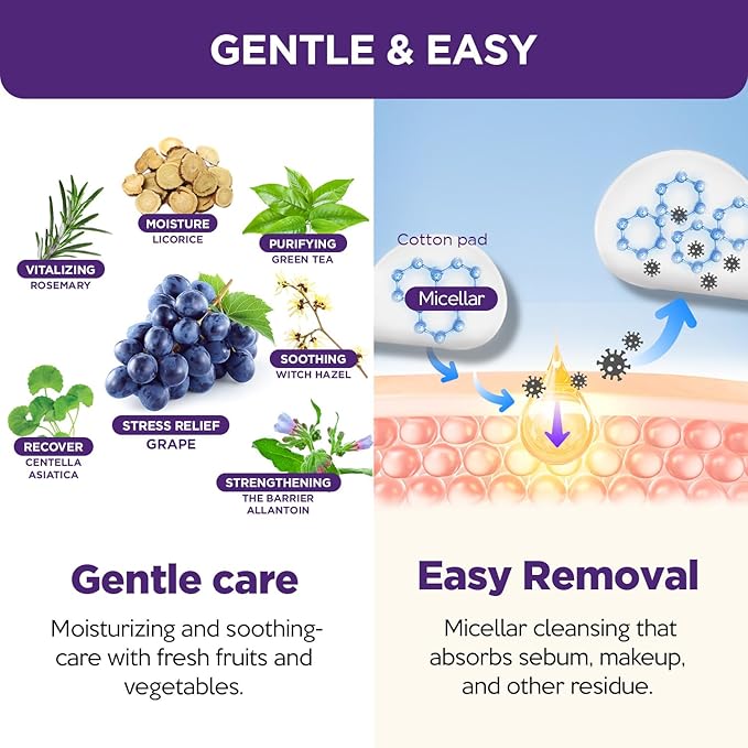 Freshfood For Skin Mild Greape Micellar Cleansing Water (10.1fl.oz, 300ml) - Micellar Cleansing Water for Face/Makeup Remover & Cleanser/Non-Irritating/Korean Skin Care